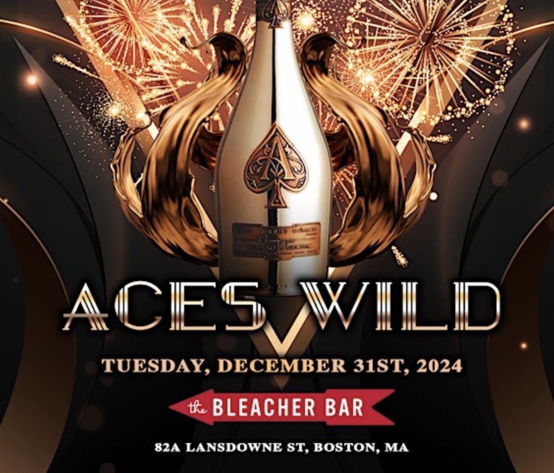Don't miss out on Boston's most exhilarating New Year's Eve celebration. Join us at Bleacher Bar for the Aces Wild NYE Party and prepare for a night of high stakes, thrilling fun, and unforgettable memories. Secure your tickets now to ensure your spot at this exclusive event. Doors open at 10:00 PM, and the excitement continues until 2:00 AM. Let's make this New Year's Eve one to remember—see you at Bleacher Bar on December 31st for the Aces Wild NYE Party! Get your tickets today by visiting our Eventbrite Page.